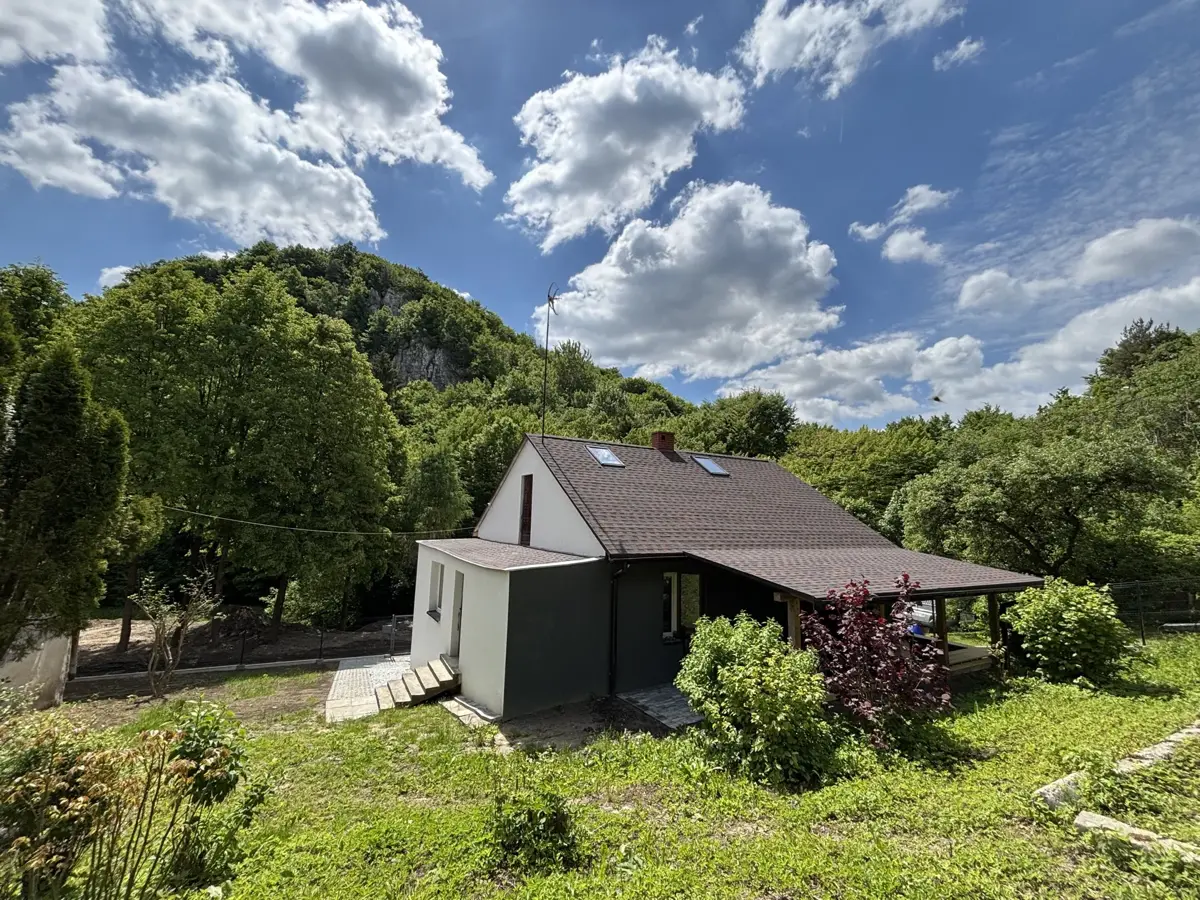 Niewielki, zadbany dom u stóp Skały Ciemnej — w samym sercu Doliny Będkowskiej.